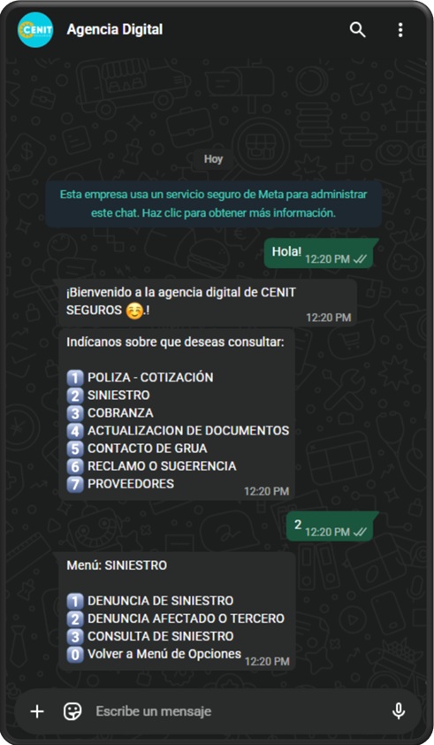 - Seleccionar la opcion "2" para desplegar el menu de consultas de siniestros